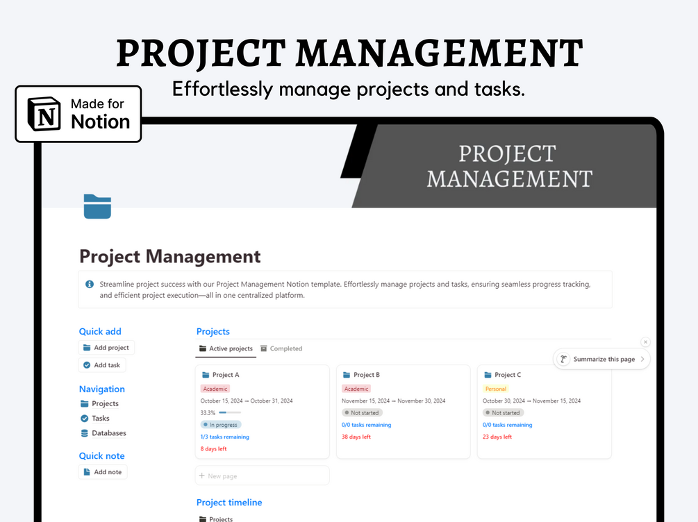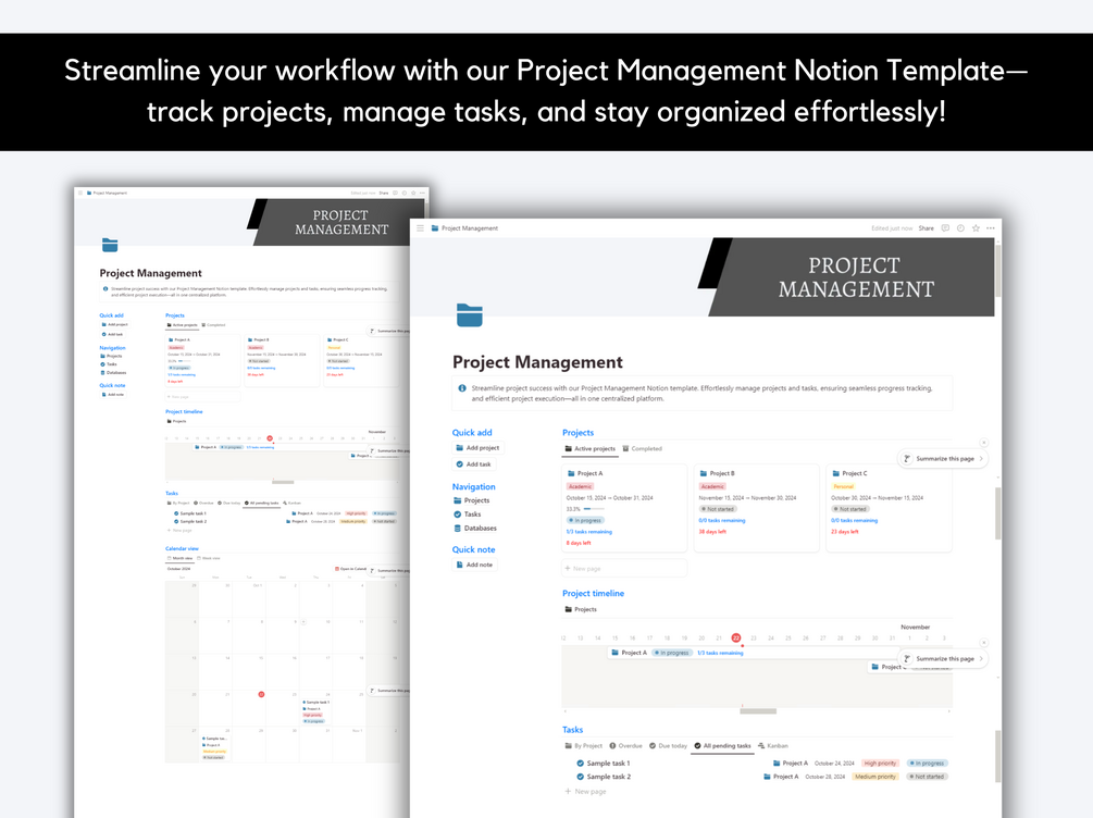 Stop feeling overwhelmed and start getting things done. Our Project Management Notion Template is here to help you effortlessly organize and manage your projects from start to finish.