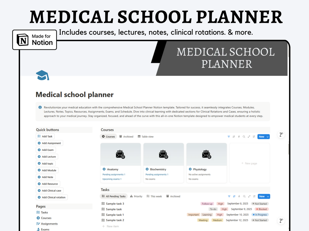 This Medical School Planner Notion template is your indispensable companion, offering a comprehensive suite of tools to navigate the complexities of medical education with confidence and success.